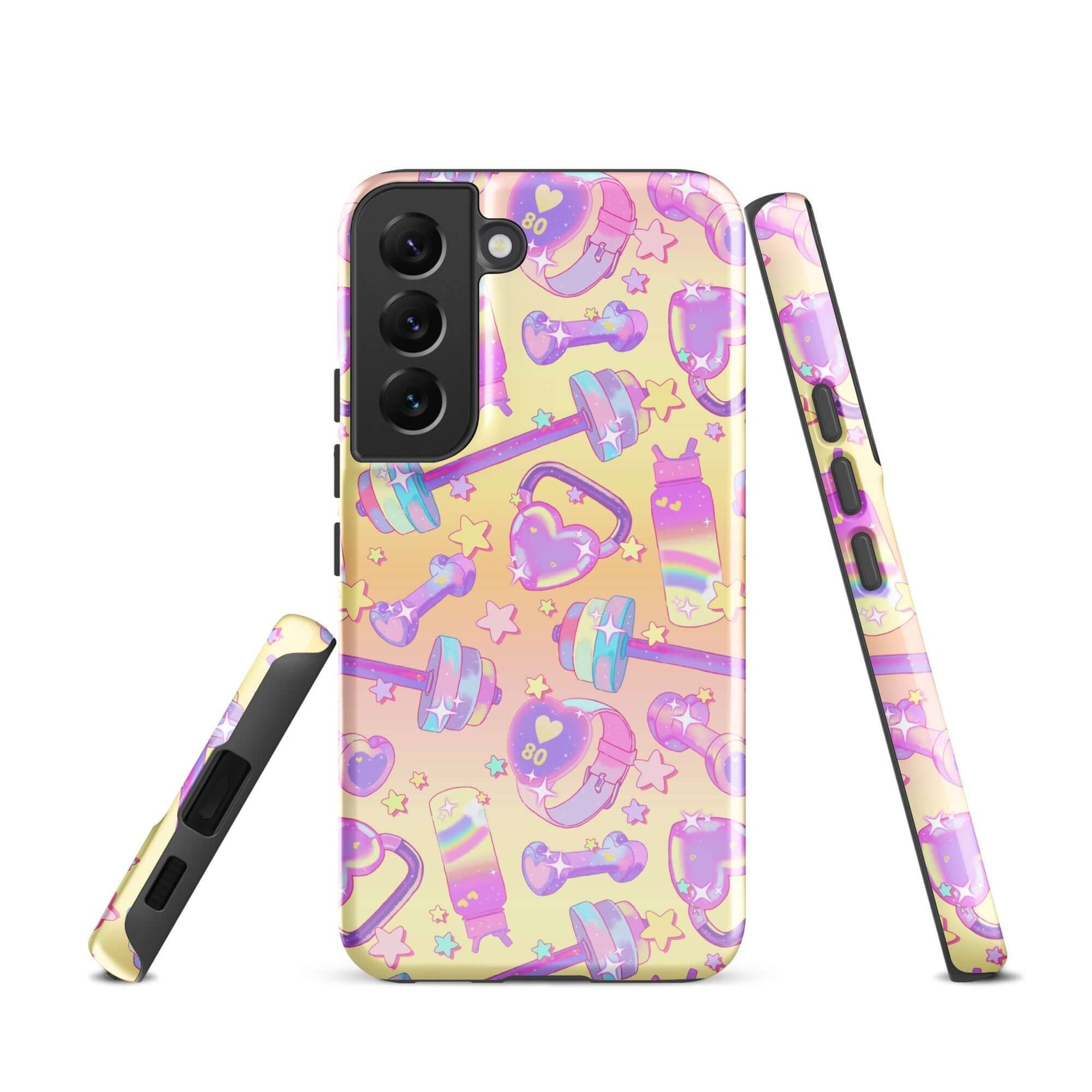 Snap on power and pastel style with the Glitter Gains Samsung® Tough Case, made for energetic grip, glitter flair, and durable fun from Koibito Clothing. Stars, sparkles, and dumbbells swirl through the piece, channeling transformation strength and pastel glow into every kawaii apparel look.